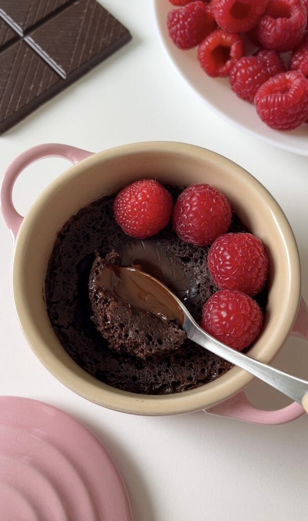 4. Cook in the microwave for 35 – 60 seconds (800W). All microwaves are different, so the cooking time might differ. I recommend checking the cake after 35 seconds and then cooking longer if needed